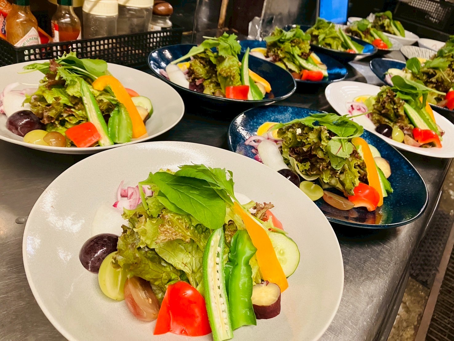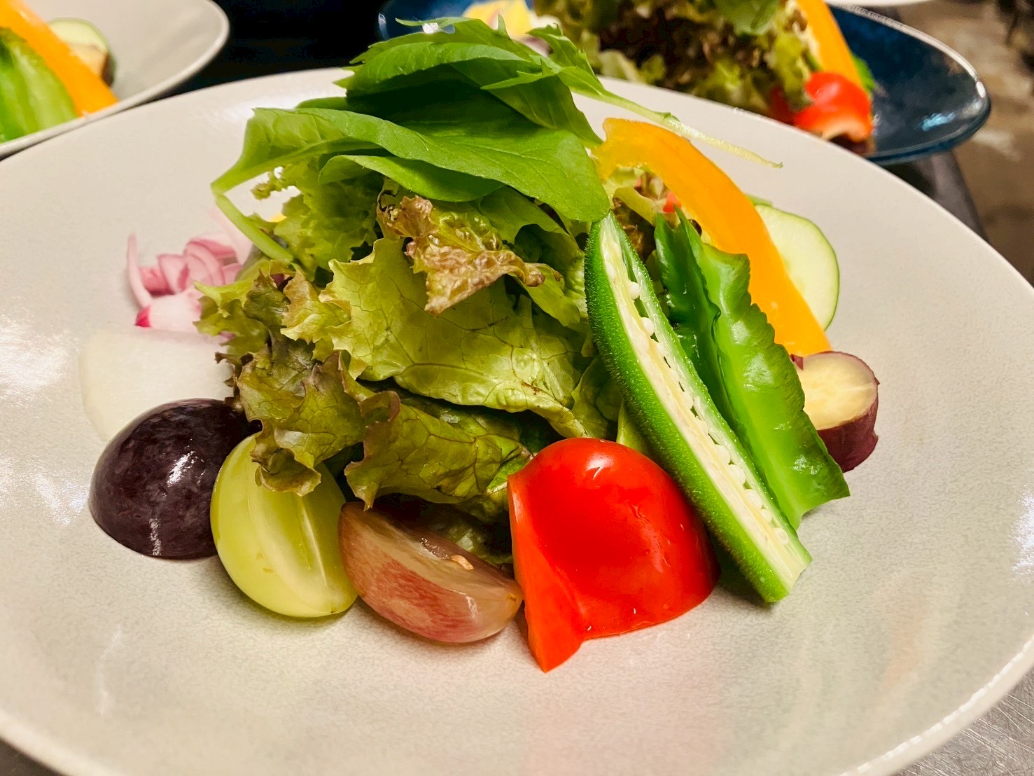 ランチサラダは店内黒板に記載しているお野菜を15種類使用して