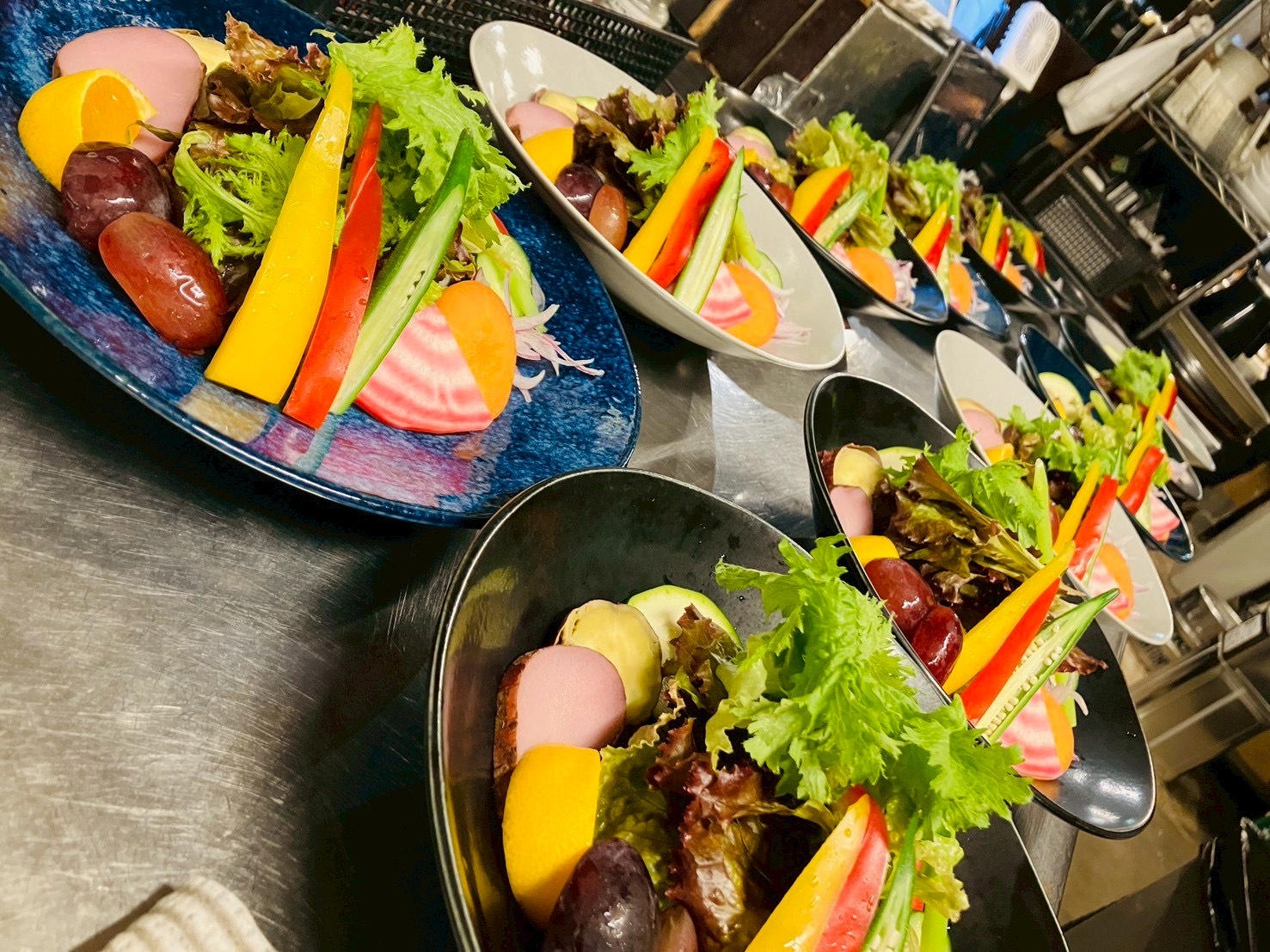 ランチサラダは店内黒板に記載しているお野菜を15種類使用して