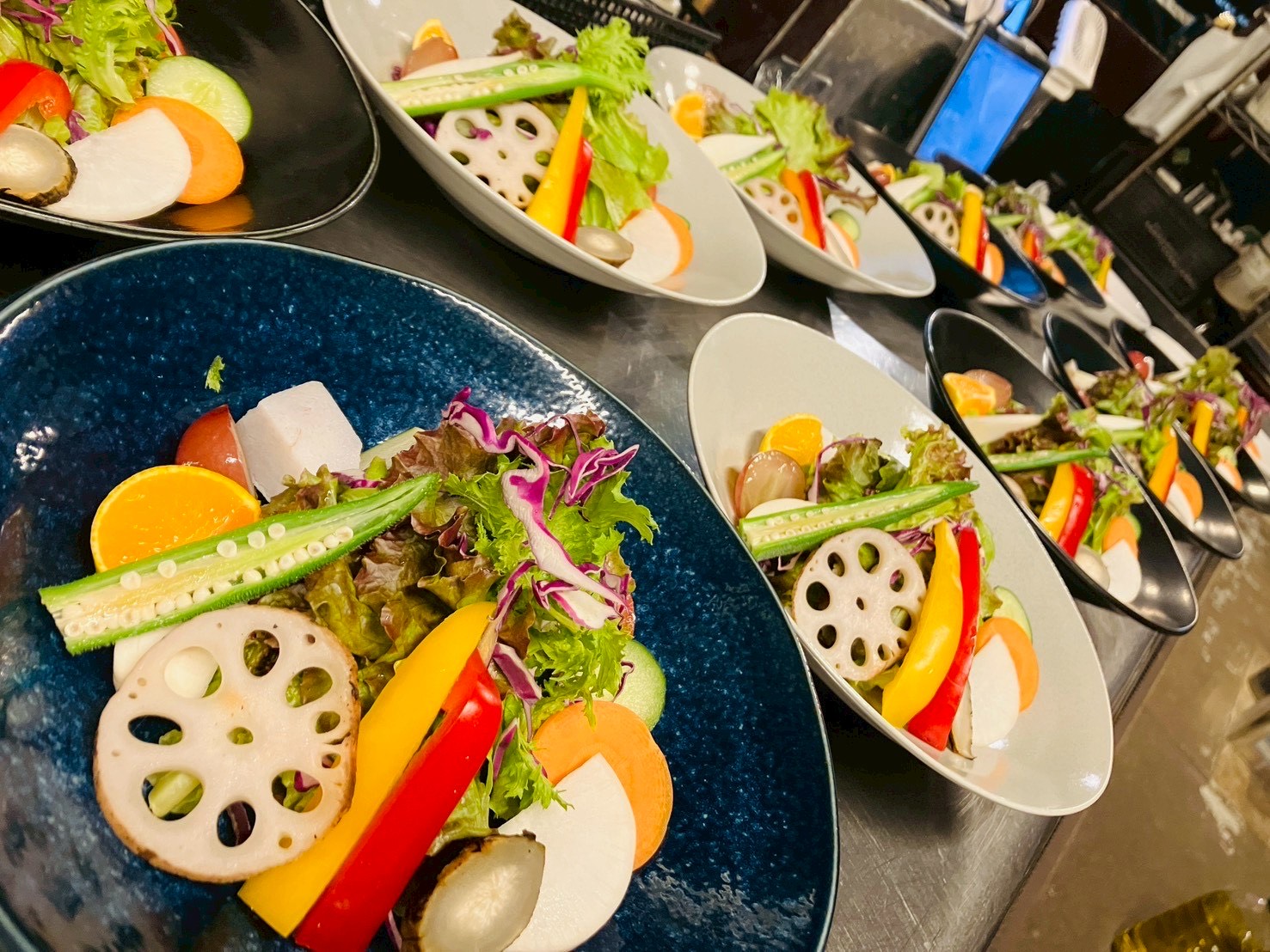 ランチサラダは店内黒板に記載しているお野菜を15種類使用して