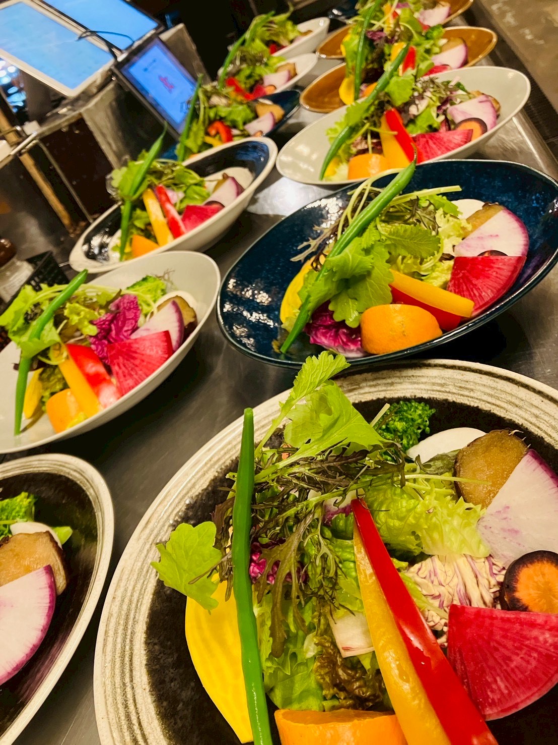 ランチサラダは店内黒板に記載しているお野菜を15種類使用して