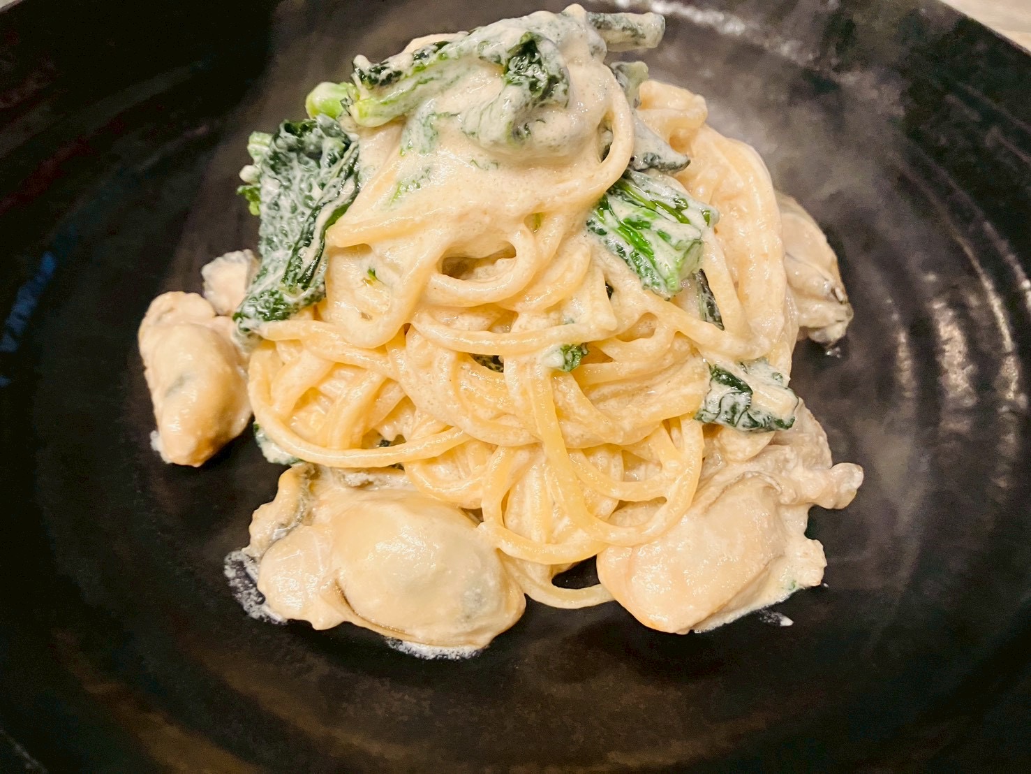 🇮🇹広島産カキ、ベビーネロのクリームソース