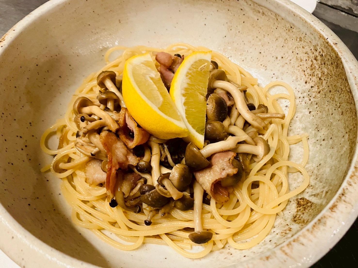 北海道産ベビーホタテ、リーキ、ベーコンのクリームソース